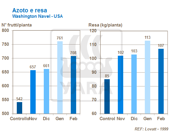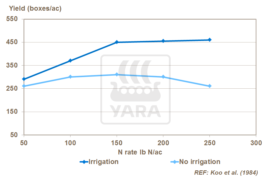 Correct use of irrigation ensures better utilization of nitrogen. Work on Valencia oranges in Florida, shows that an irrigated crop can use more nitrogen, increasing yields.