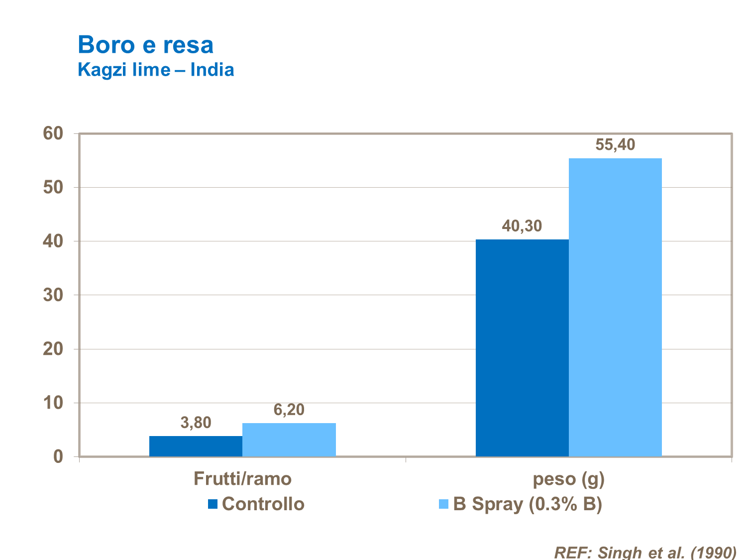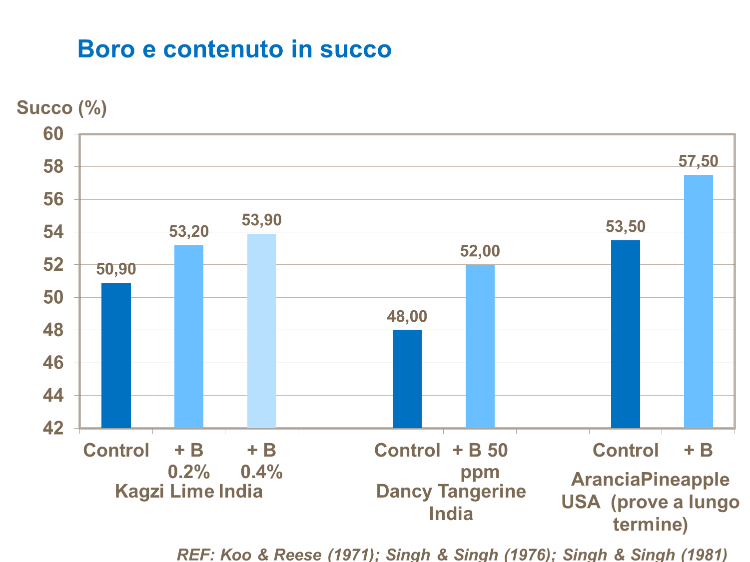 Gli agrumi sono molto sensibili al Boro, come mostrano le risposte ai trial.