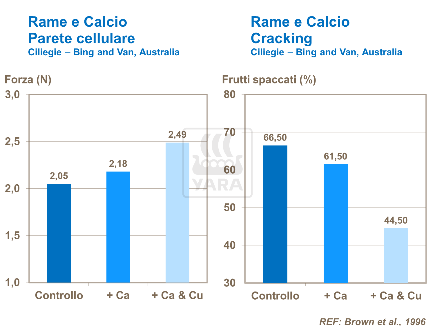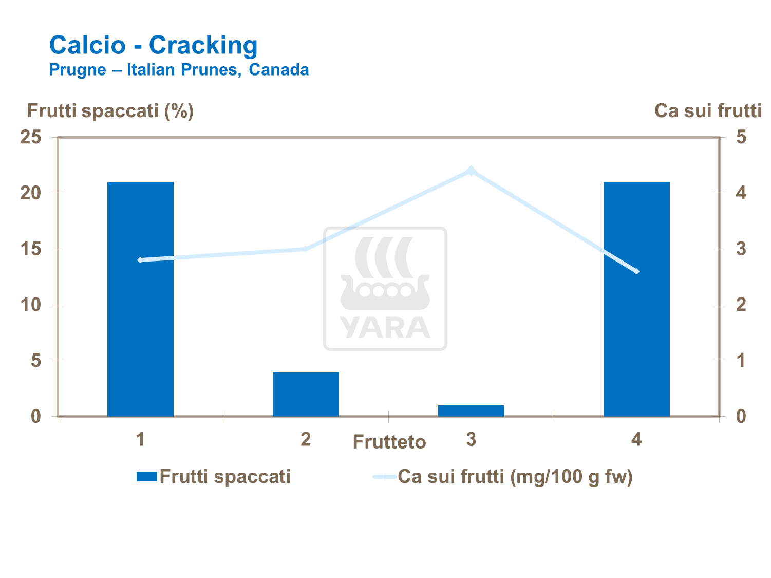 Le nebulizzazioni di Calcio mirate al frutto hanno aumentato il contenuto di tale sostanza e hanno contribuito a ridurre le fessurazioni nelle ciliegie e nelle prugne.