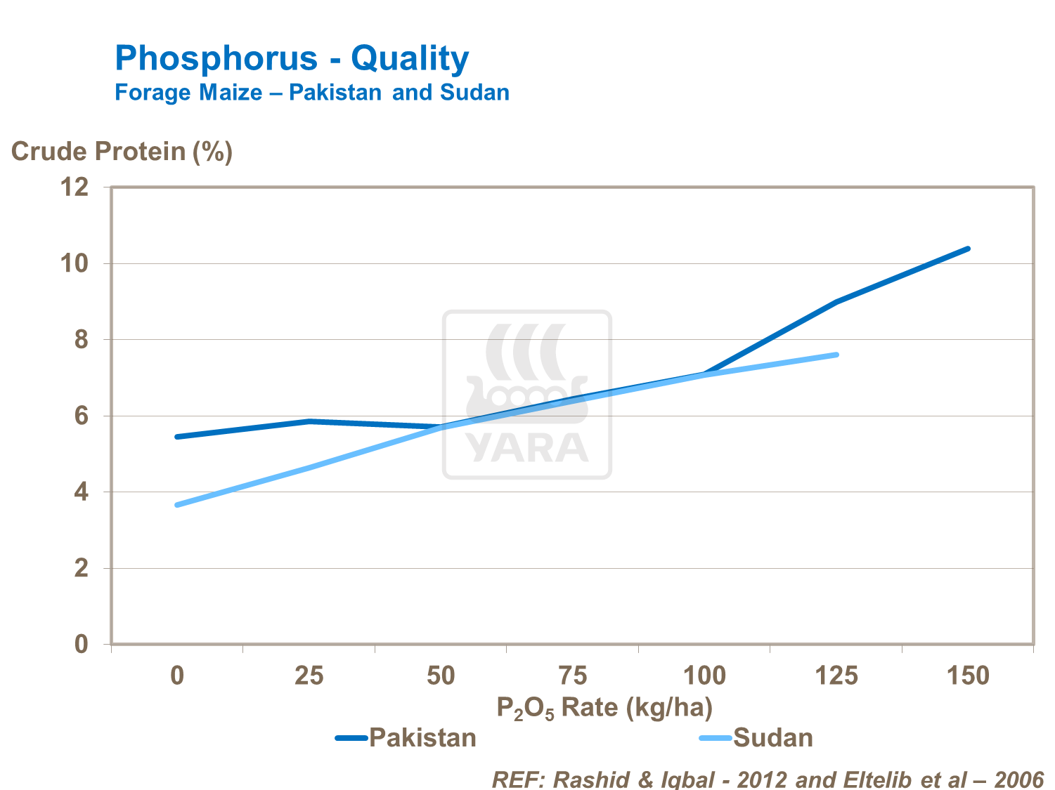 L'assorbimento di fosforo dal terreno continua dopo che i chicchi iniziano a svilupparsi e, una volta raggiunta la maturazione, il 70% del fosforo presente nella pianta si trova nei chicchi. Qui ha un effetto diretto sulle proteine dei chicchi di mais. Nelle fasi successive della crescita, il fosforo favorisce lo sviluppo dei chicchi di grano e accelera la maturazione del raccolto.