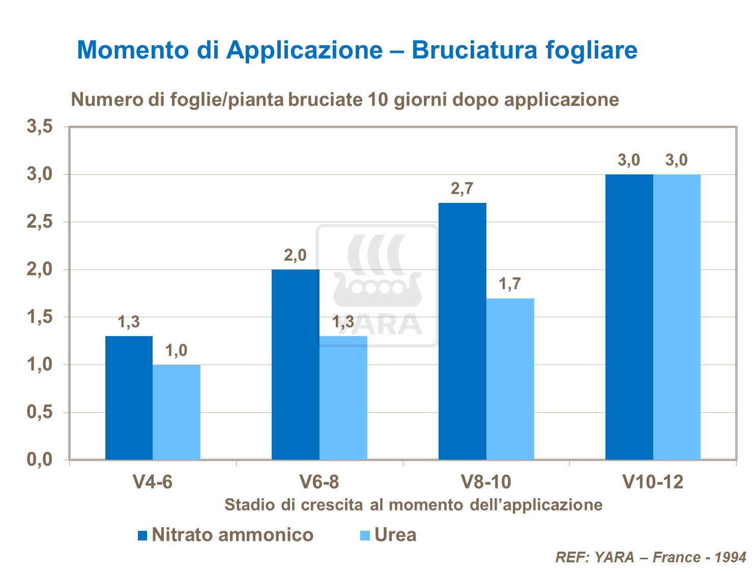 Mentre gli effetti di questo "abbrustolimento" raramente influiscono in modo irreversibile sulla resa, a seguito della guarigione e della ricrescita della pianta, uno studio francese dimostra che lo spargimento è più efficace prima dello stadio V6.