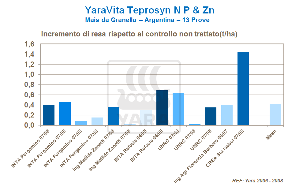 Ad esempio, sperimentazioni con YaraVita Teprosyn NP + Zn su mais hanno permesso di ottenere miglioramenti in termini di germinazione del seme, affrancamento e successiva crescita.