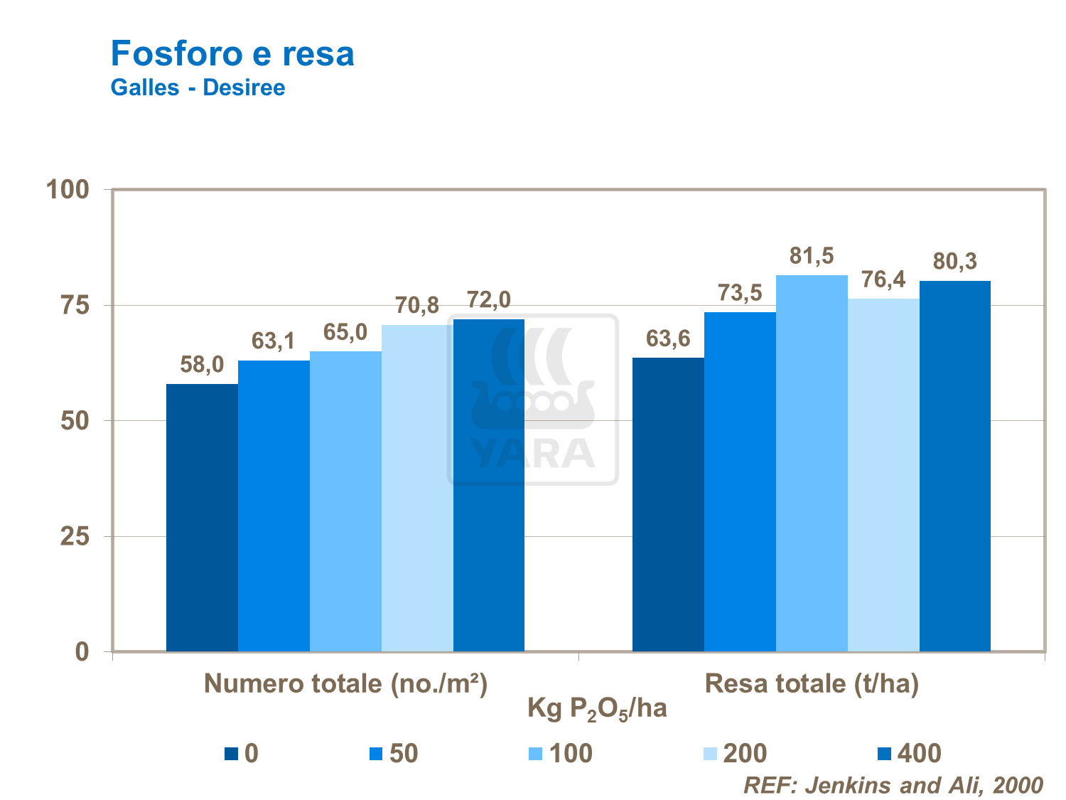 Studio condotto in Galles che mostra gli effetti del fosforo nell'aumento del numero totale di tuberi e della resa complessiva.