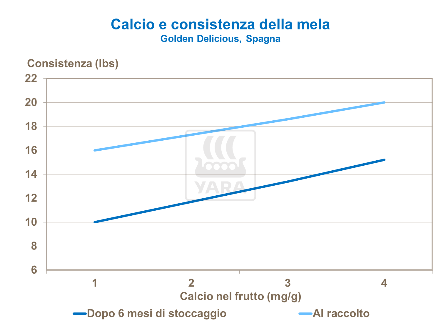 Il calcio svolge un ruolo importante nel migliorare la qualità delle mele garantendone la durezza. Assicura infatti una migliore integrità delle pareti cellulari e adesione fra le cellule, fattori che rendono la polpa più compatta e meno esposta a lesioni o disfacimento dei tessuti.