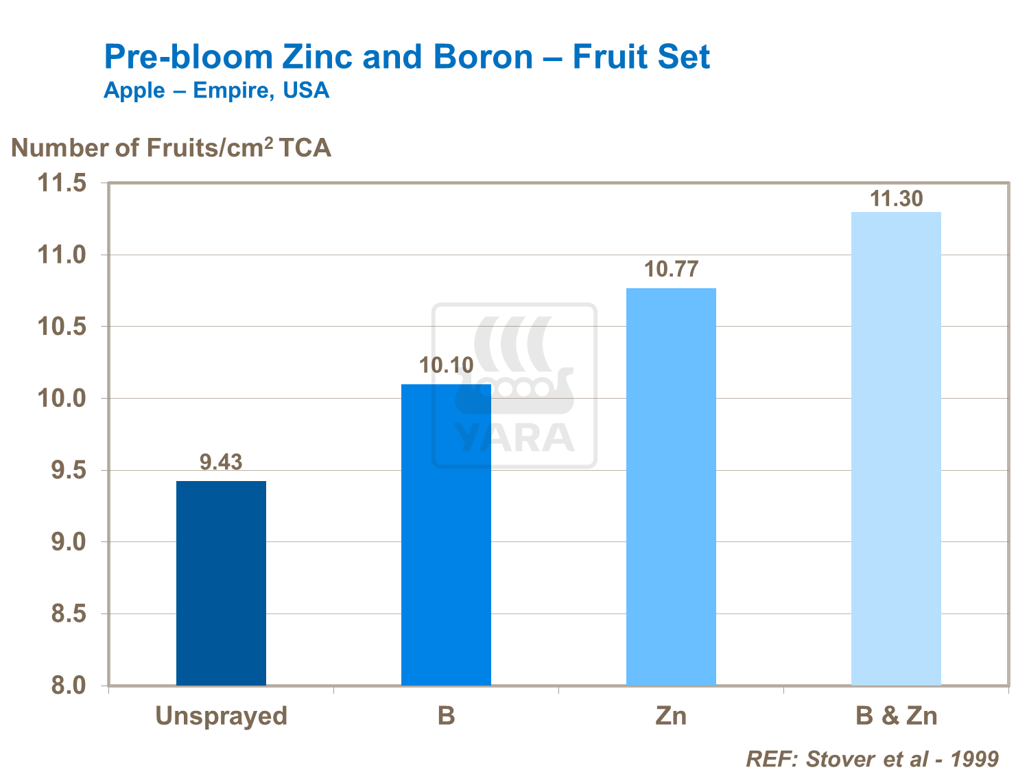 Le somministrazioni pre-fioritura di Zinco possono essere utili per gli alberi che hanno subito lesioni durante l'inverno e assicurano che gli apporti siano sufficienti durante la fioritura e l'allegagione.
