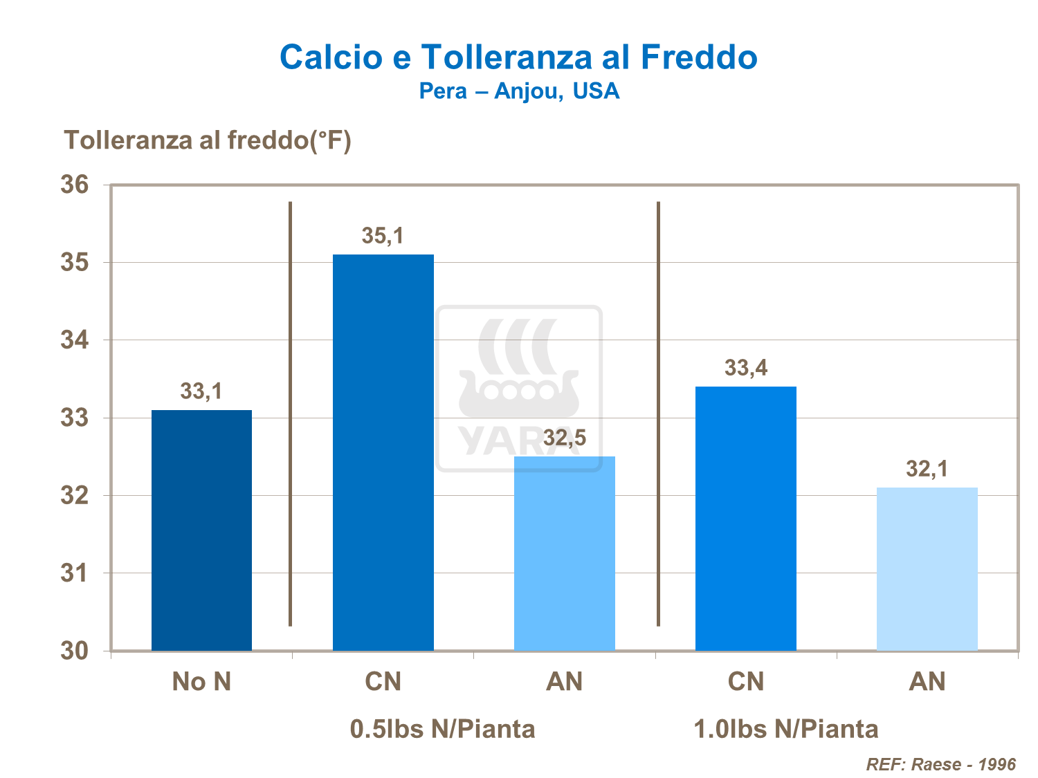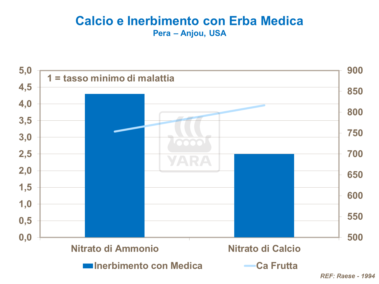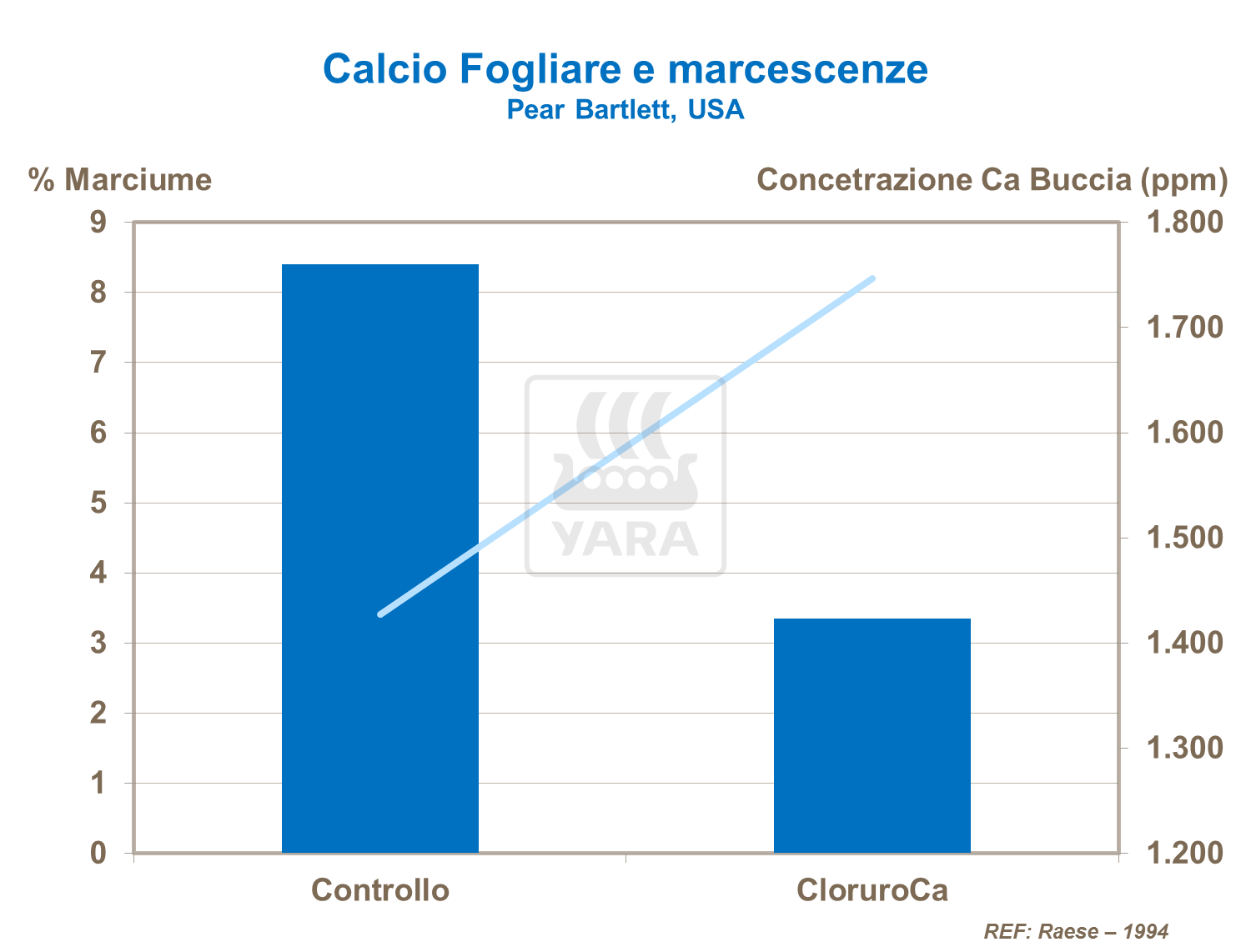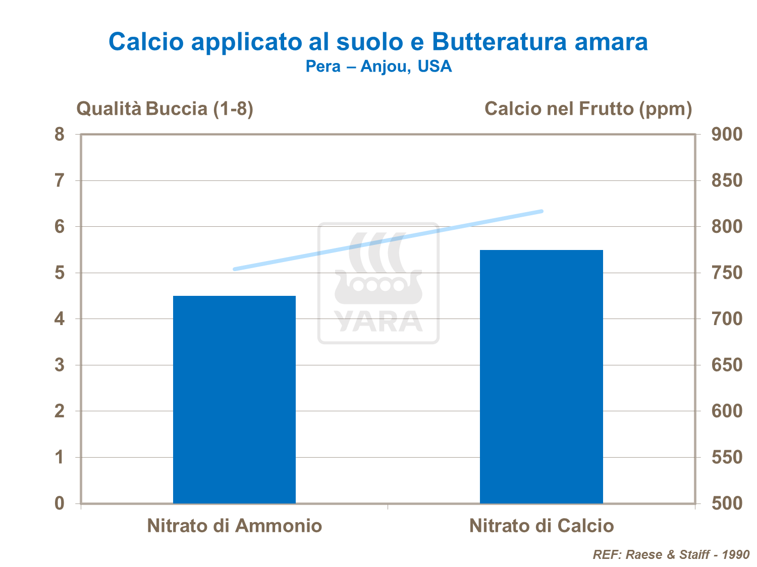 La somministrazione del Calcio sia per via fogliare che al suolo è utile per diminuire l'incidenza della butteratura e dell'inverdimento. Il rapporto N:Ca deve essere mantenuto a 6 o a un valore inferiore al fine di ridurre l'inverdimento nelle pere.