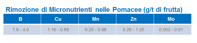 Nonostante siano necessarie concentrazioni nettamente inferiori di micronutrienti per consentire una buona crescita, boro, rame, manganese e zinco sono fondamentali per le pomacee.