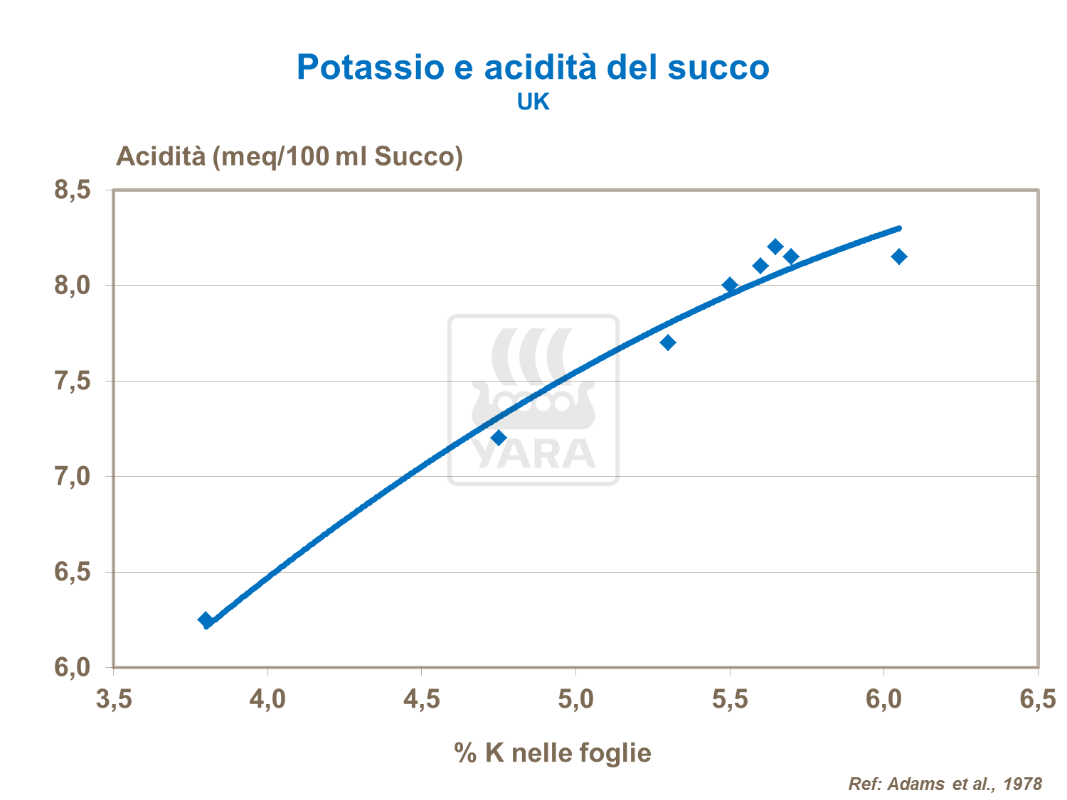 Alti livelli di Potassio aumentano l'acidità delle bacche e quindi quella dei trasformati.