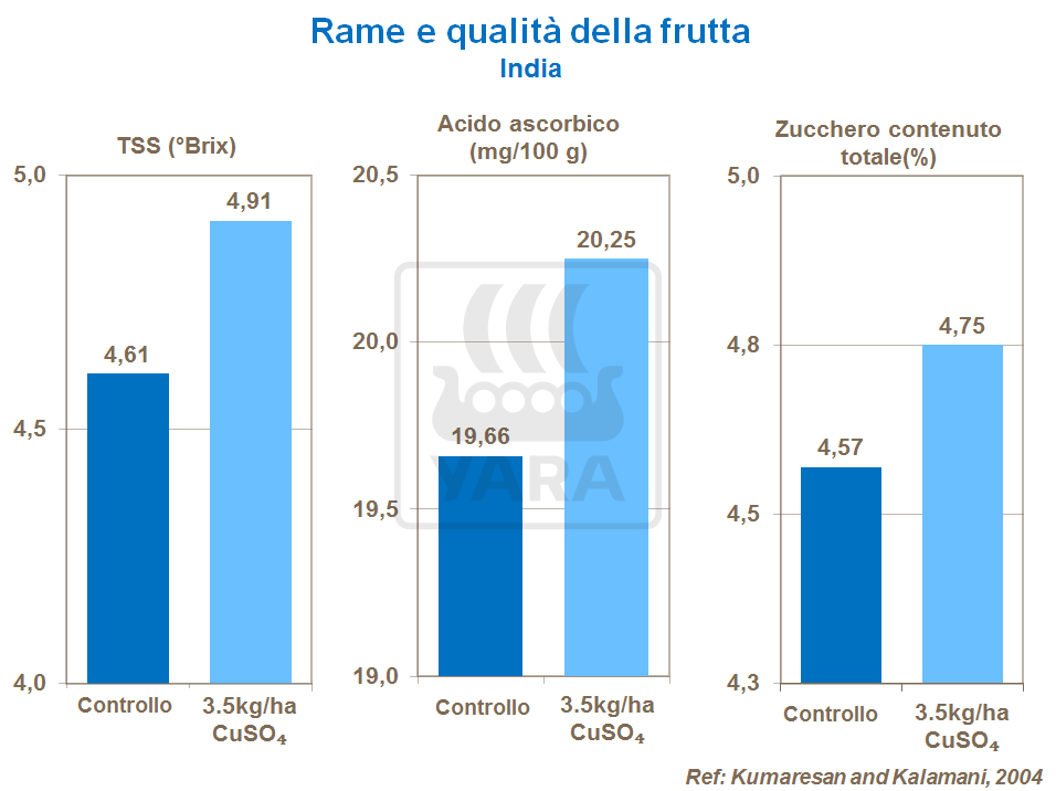 L'applicazione di Rame in terreni carenti migliora la qualità delle bacche.
