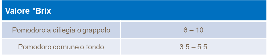 I pomodori destinati alla trasformazione richiedono un grado Brix minimo pari a 4,5. Ciò si confronta con un intervallo accettabile di 3,5 - 5,5 nei pomodori freschi.