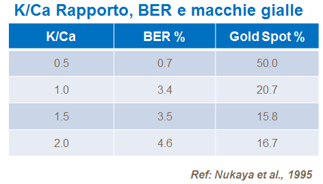 Garantire un programma nutrizionale equilibrato, soprattutto con potassio e calcio, riduce al minimo l'insorgenza di questo disturbo. L'uso di nitrati al posto di fertilizzanti a base di cloruro riduce il rischio di insorgenza delle macchie gialle.